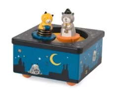Découvrez l’univers des Moustaches en musique, cette jolie boîte à musique évoque le monde festif de ces chats musiciens. Les deux petits personnages aimantés en résine, Fernand et Lulu tournent au milieu de la piste au son de la mélodie pour bercer et endormir bébé. Le décor de la boîte représente Monsieur Hibou en balade sur les toits de la ville. C’est également un superbe objet de décoration qui égaiera la chambre de bébé. Ne pas mettre au sèche-linge. Dès 3 ans.