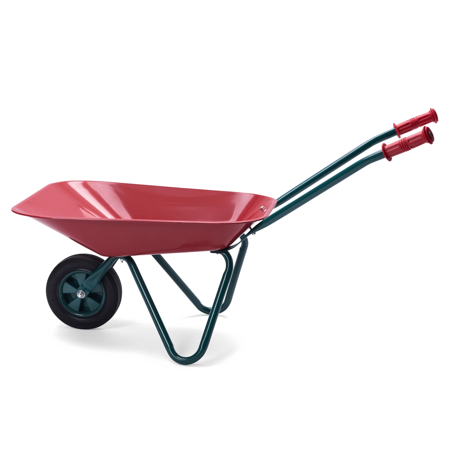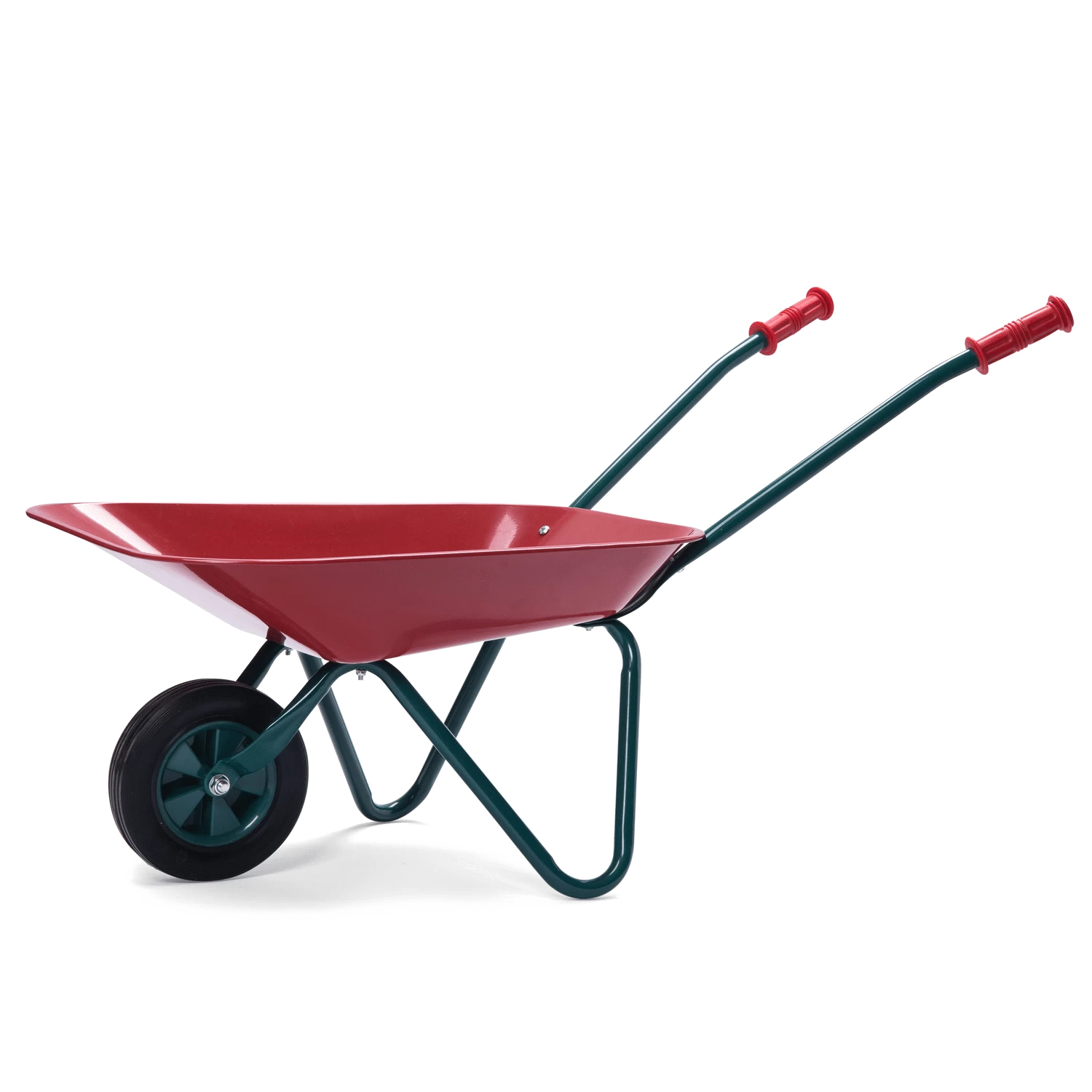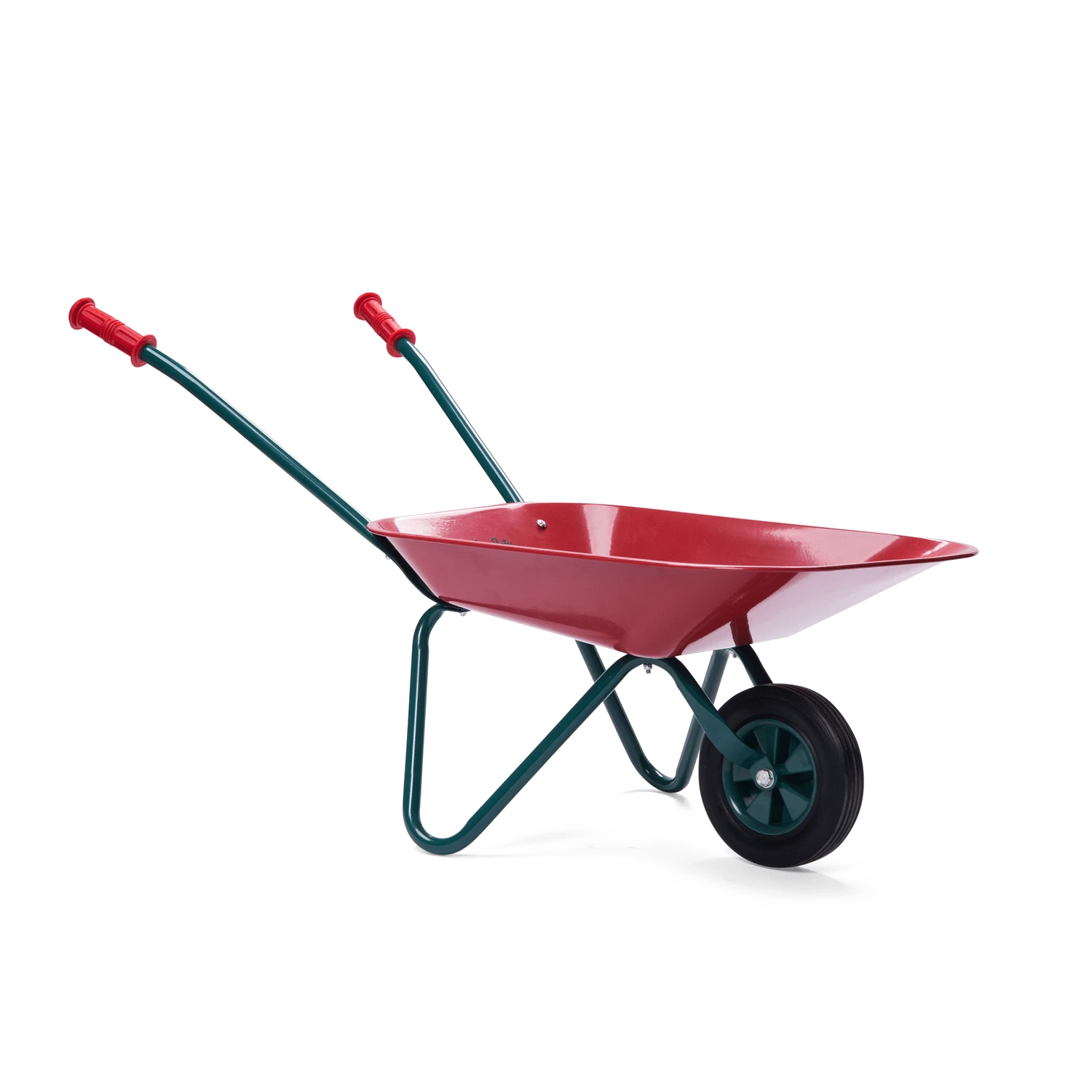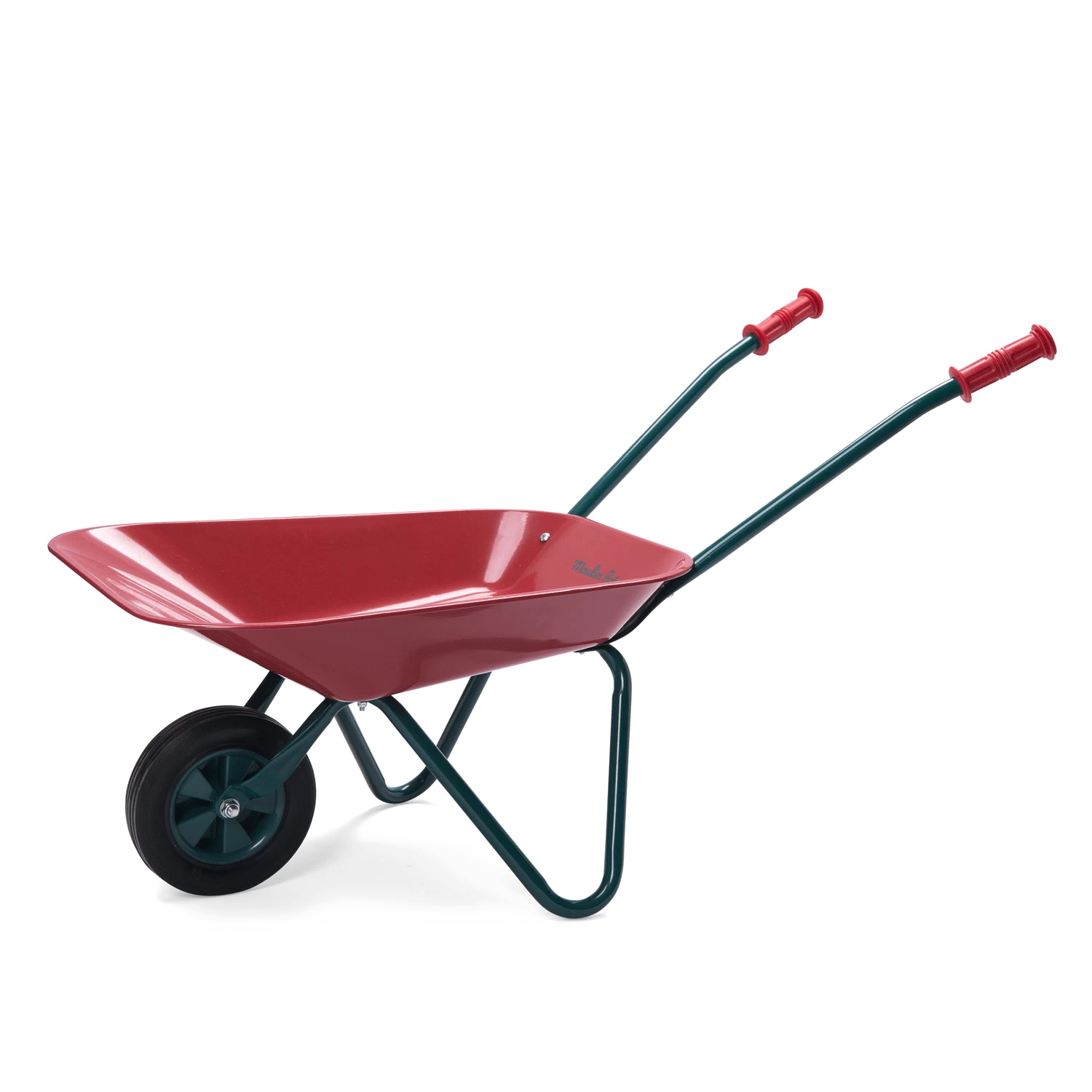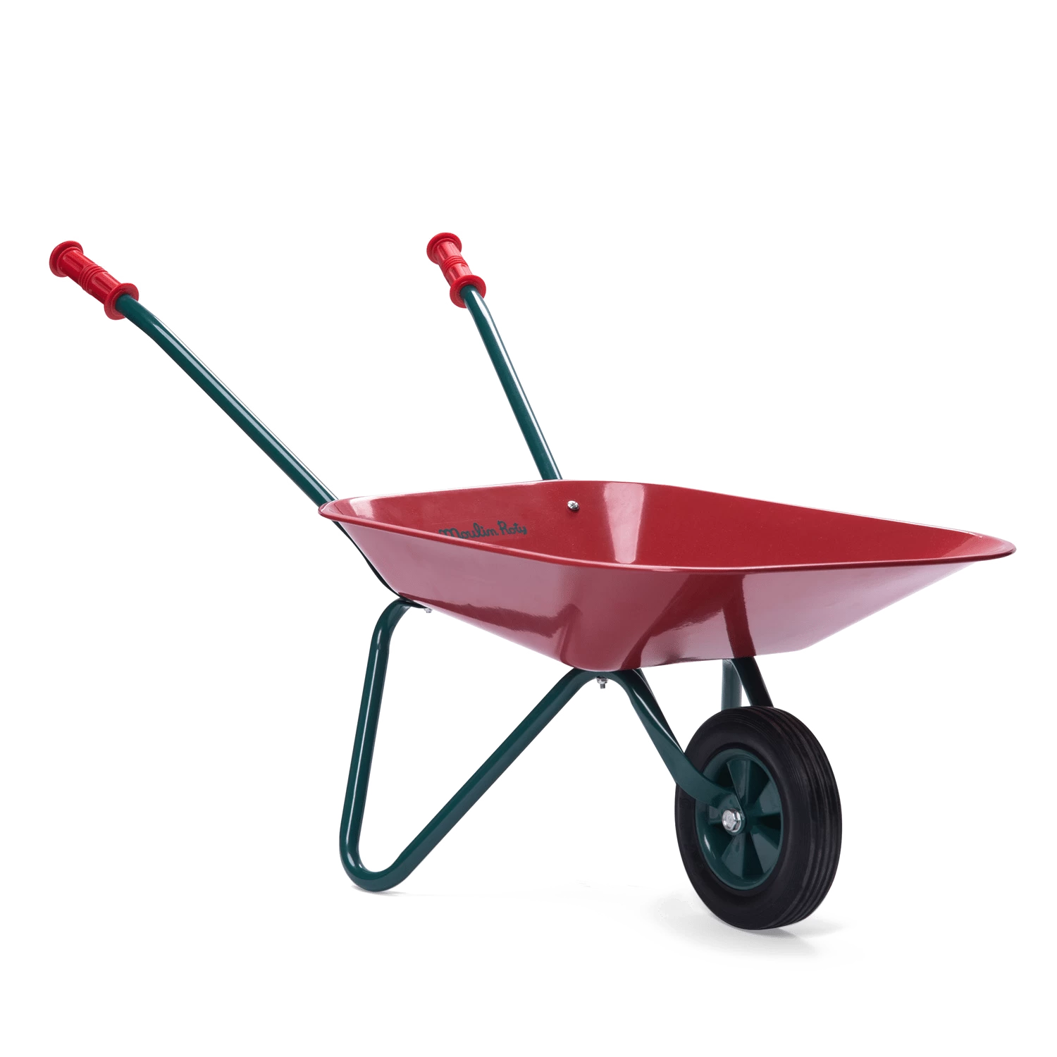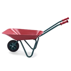 Brouette colorée, légère et solide, avec des poignées basses à hauteur de nos petits jardiniers en herbe, pour qu’ils puissent charger, décharger et transporter facilement tous leurs petits trésors : fleurs, légumes, feuilles, jouets…