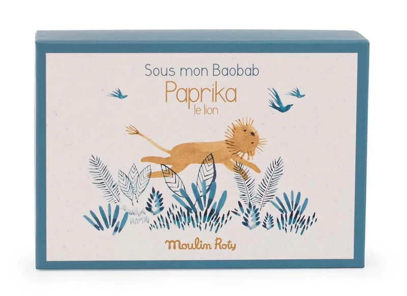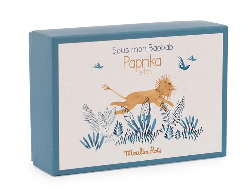 Voici d’adorables chaussons à l’effigie de Paprika, charmant petit lion issu de la toute nouvelle collection “Sous mon Baobab” de Moulin Roty. Emplie de douceur, dans des tons sobres et aux motifs aquarelle, cette jolie collection nous emmène faire la rencontre de tendres animaux sauvages et nous plonge dans l’univers extraordinaire de la savane. Grâce à ces chaussons tout mignons, les pieds de votre bébé seront gardés bien au chaud. Ils sont composés de tissu couleur moutarde et beige et leur texture toute douce est très agréable au toucher. De plus, leur forme en chaussette montante permet un excellent maintien. La crinière de Paprika est composée de bandes de tissu enroulé, ce qui lui confère un look original et tellement craquant, sans oublier ses adorables petites moustaches . Ces chaussons sont livrés dans une très jolie boîte cadeau bleue illustrée du personnage de la collection. Idéal pour un cadeau de naissance. Pas de sèche-linge. Taille 0/6 mois.