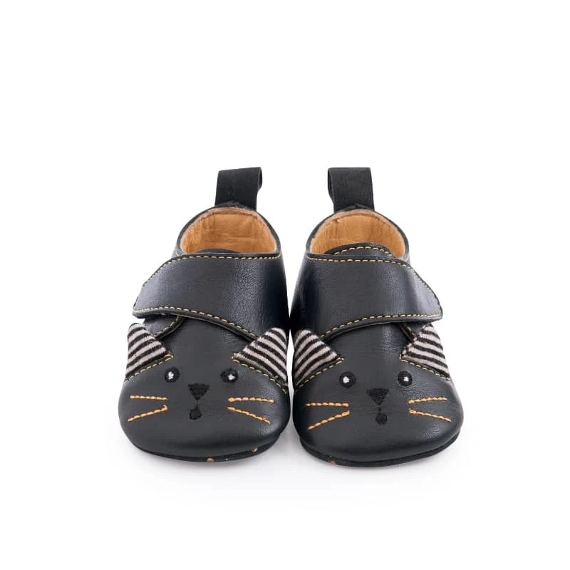 Chaussons Cuir Chat Noir Les Moustaches Moulin Roty