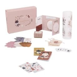 Tous tes premiers souvenirs, rassemblés dans un coffret illustré. Petits carnets de notes, images à distribuer, stickers, sachets en tissu ou boîte à trésors, et même un poster avec ton arbre généalogique… Tout se rejoint, et se conserve précieusement.