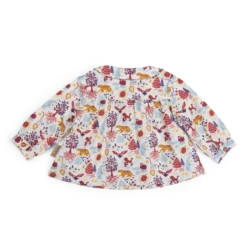 Garance Blouse Popeline Crème Allover Paysage Les Animaux Du Monde Moulin Roty