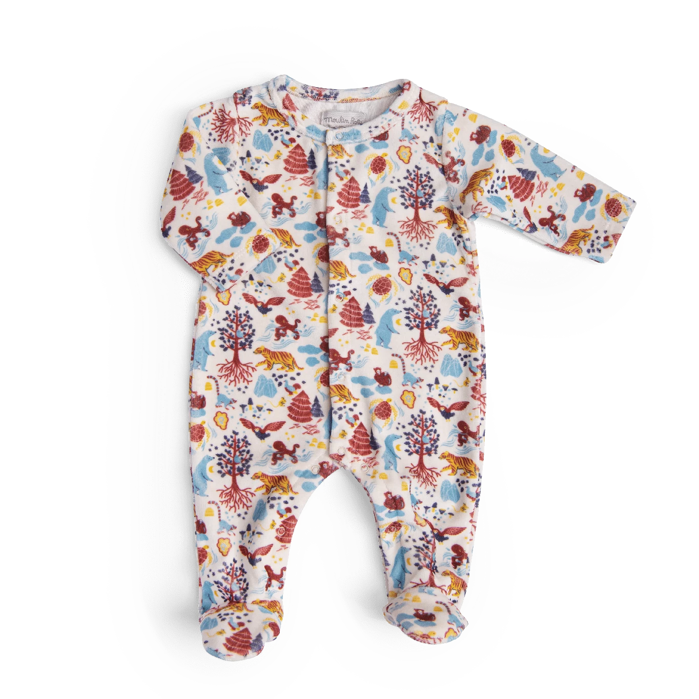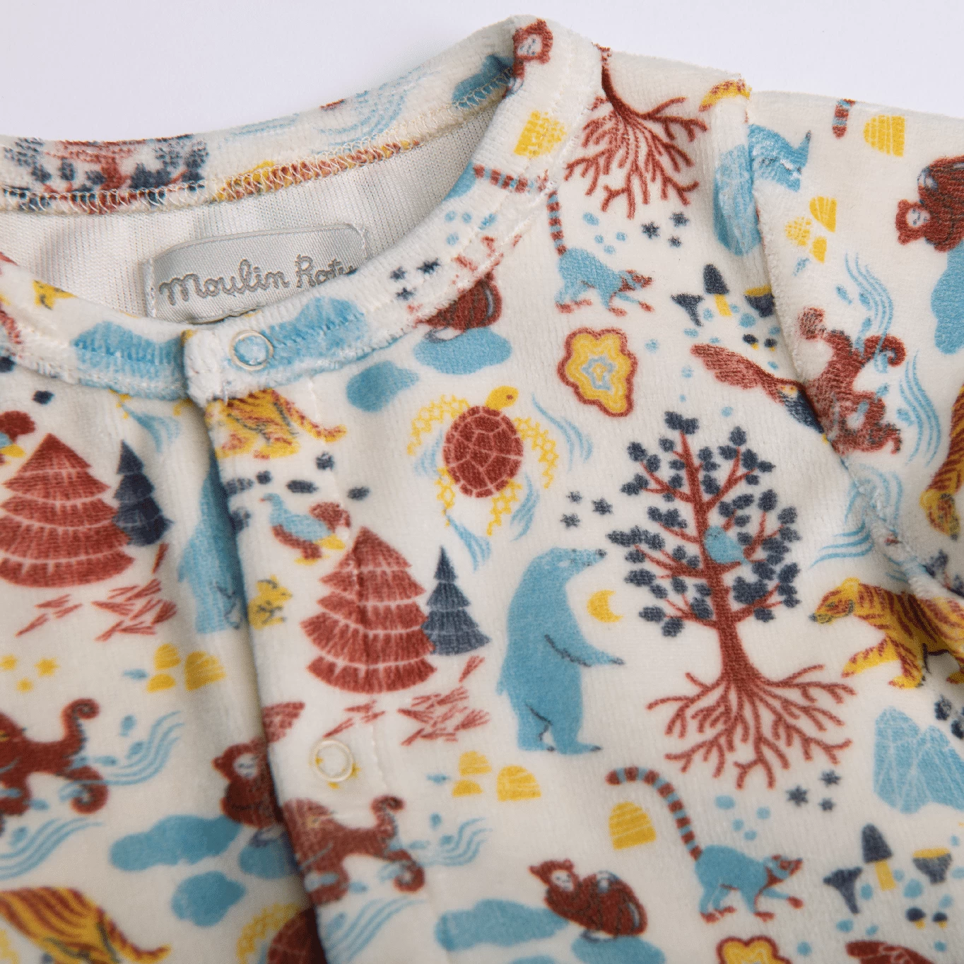 Gentil Pyjama En Velours écru Animaux Paysage Les Animaux Du Monde Moulin Roty