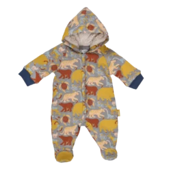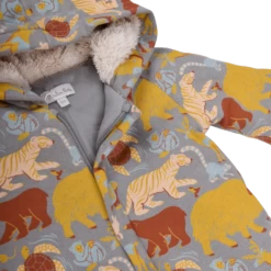 Combinaison pilote et son imprimé animaux du monde, en molleton gratté. Capuche intégrée. Doublure intérieure ouatinée. Détails bord-côtes aux poignets. Facile à enfiler avec sa fermeture zippée à l’avant.