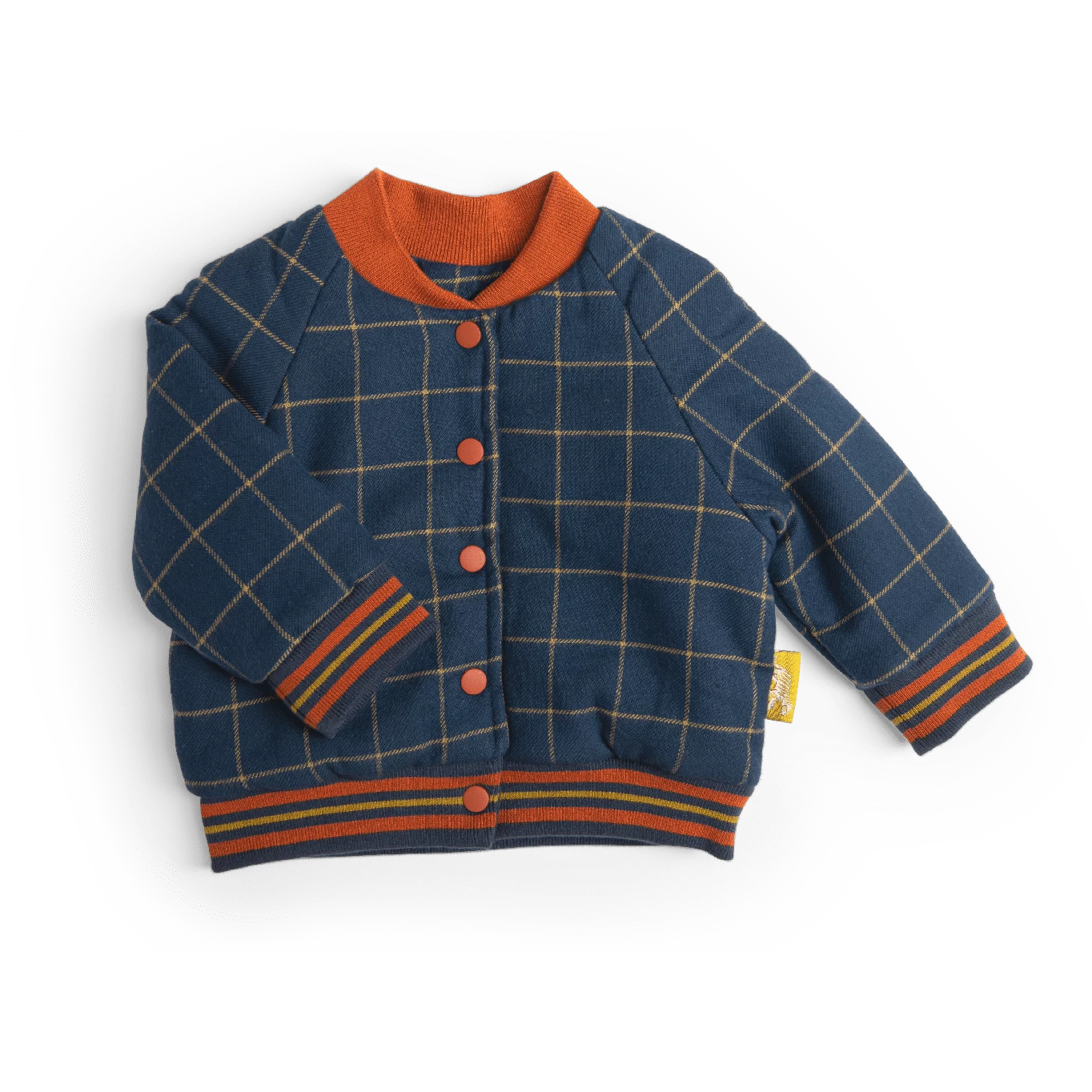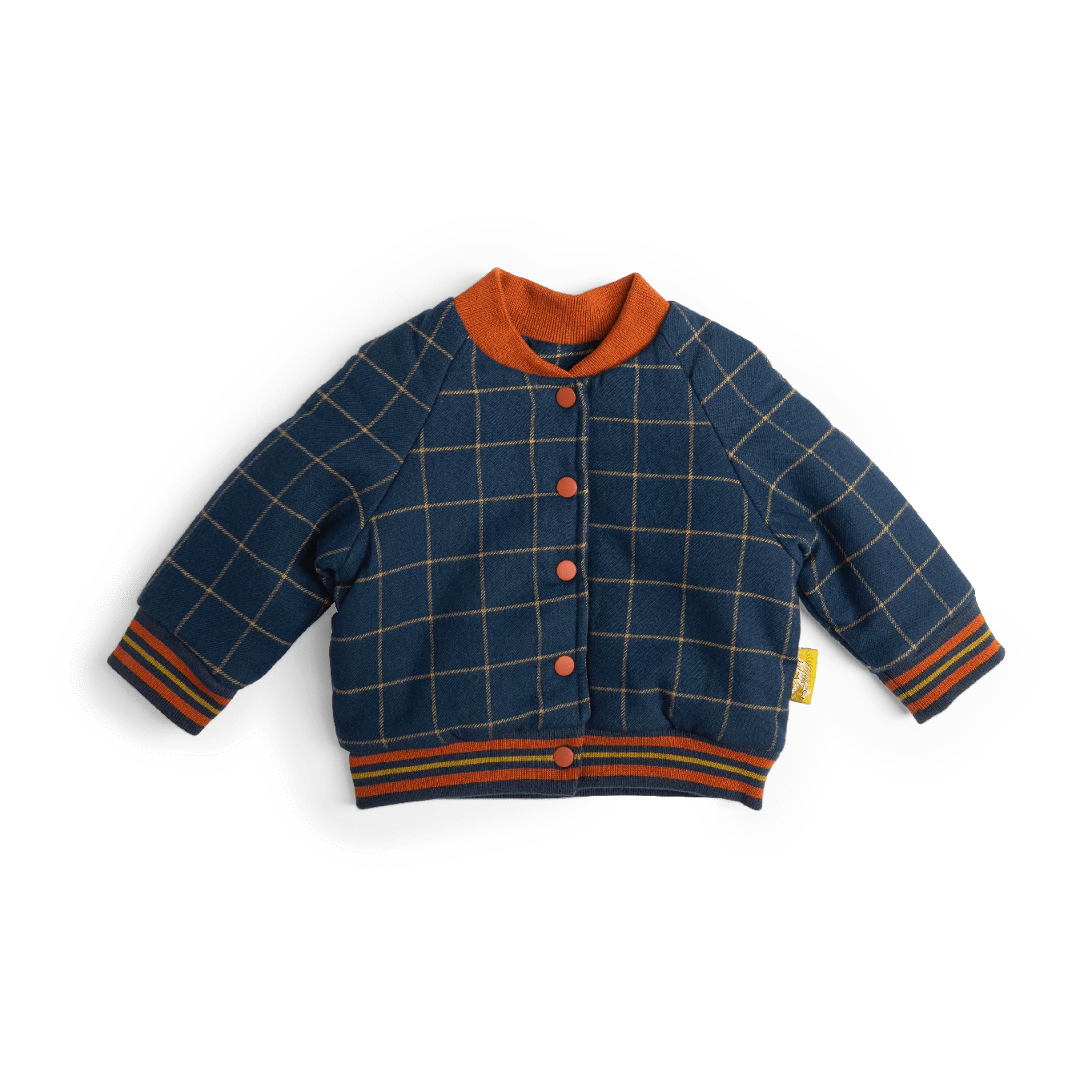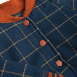 Teddy à carreaux 100% coton, au fini gratté ultra-doux, entièrement doublé d’un jersey curry. Détails bord-côtes rayés aux poignets et au bas de sweat, uni à l’encolure. Fermeture par boutons pression contrastés.