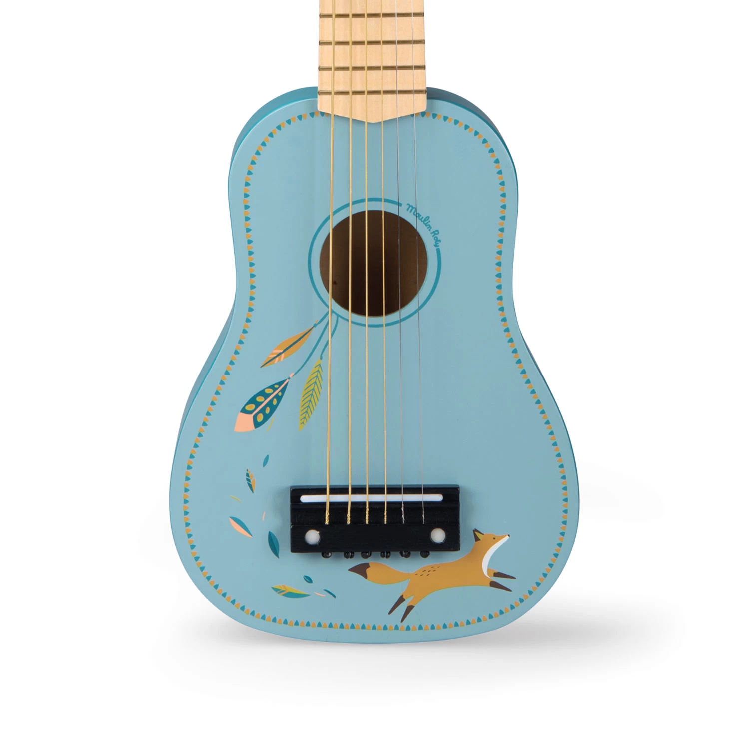 Cette guitare 6 cordes permettra à votre enfant de s’éveiller à la musique et peut-être lui en donner la passion. Cet instrument de musique arbore le beau renard de la collection entouré de plumes. Idéal pour développer les capacités motrices de votre tout petit.