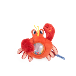 Bébé va en pincer pour ce hochet crabe plein de surprises à explorer. Ce petit crustacé arbore un miroir qui reflète la lumière des fonds marins, des billes qui font du bruit et bien sûr des petites pattes aux tissus différents pour chatouiller le sable.