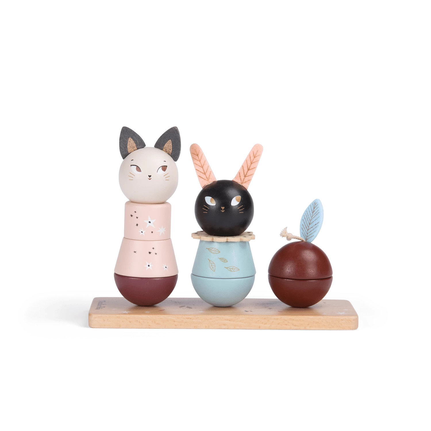 Un jouet à empiler en bois pour développer la capacité de l’enfant à manipuler et compter. Sur un socle en bois, empilez les parties en bois coloré pour recomposer les doux esprits d’Après la pluie… ou mélangez-les !