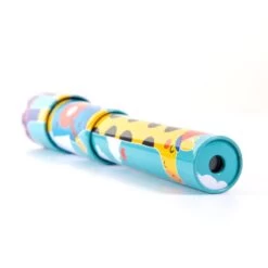 Kaléidoscope en métal coloré, illustré d’une girafe musicienne ! Tourner, en même temps et à contre sens, les deux parties du kaléidoscope pour découvrir toujours plus de nouvelles combinaisons de couleurs.