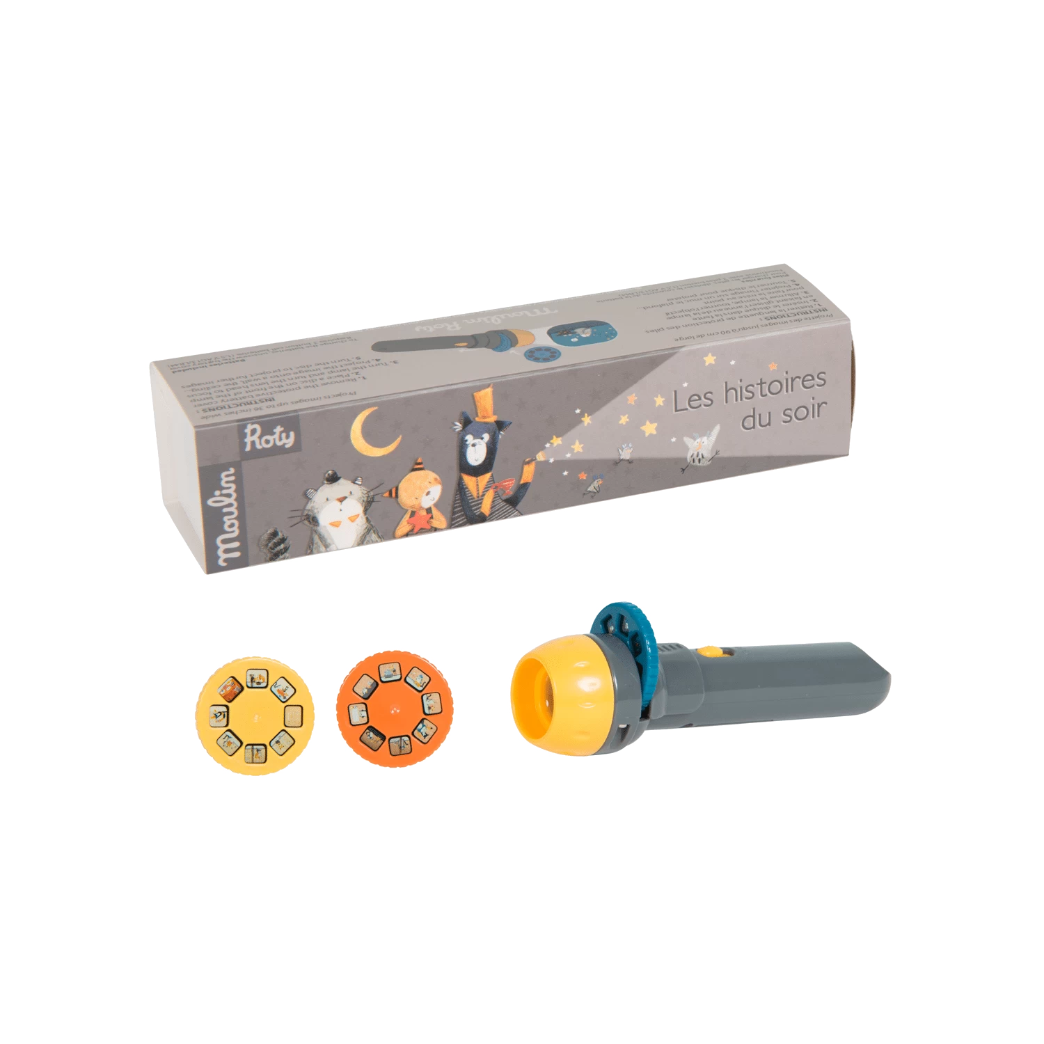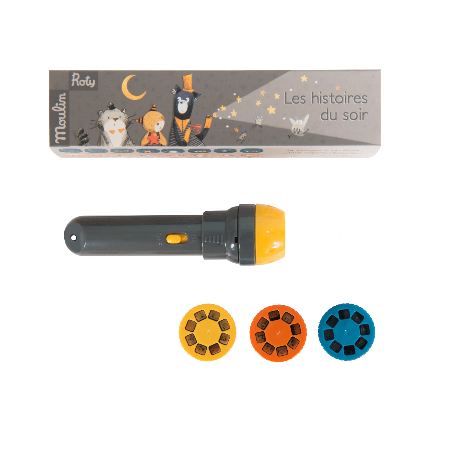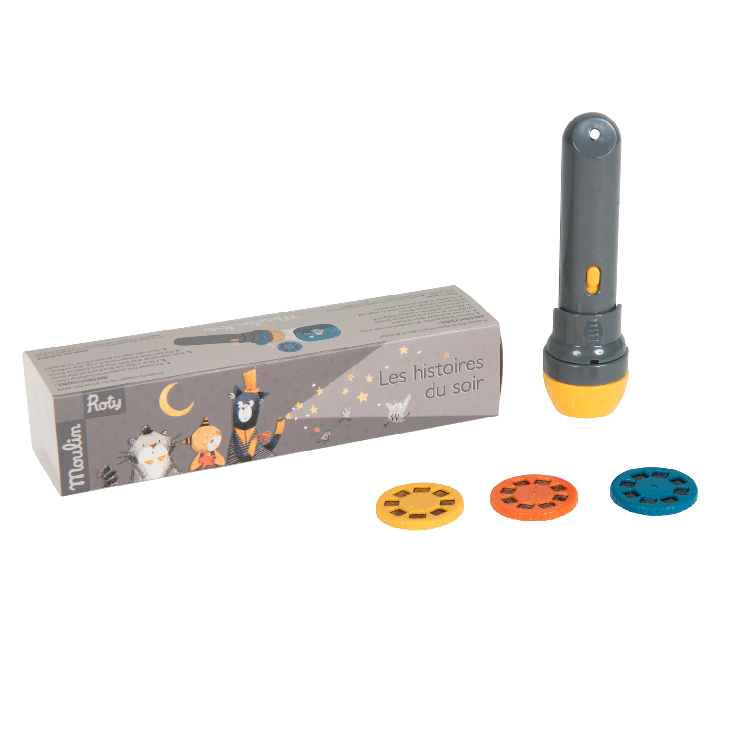 Découvrez la lampe à histoire grise de Les Moustaches ; trois histoires racontant les aventures de nos chats à moustaches : “Le bal des Matous”, “Au chat propre” et “L’heure du goûter”. Cette lampe est facile à utiliser : insérez un disque dans la lampe, allumez, les images se projettent sur un mur ou le plafond. Avec son doigt, on fait tourner le disque pour faire apparaître les images une par une tout en racontant l’image à votre enfant. En grandissant, votre bambin pourra à son tour raconter l’histoire tout en stimulant son imagination. Dès 4 ans. CLIQUEZ ICI POUR VOIR LE DETAILS DES HISTOIRES Retrouvez sur Jeujouet.com toutes les lampes à histoire de Moulin Roty.