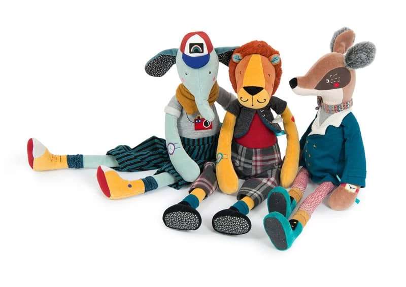 Pablo l’éléphant très attachant, voyage à travers l’Amérique toujours muni de sa casquette et son appareil photo ! Avec son pantalon rayé, foulard noué et baskets aux pieds, cette peluche Broc’ & Rolls signée Moulin Roty fera le bonheur des petits et grands, pour jouer ou décorer !