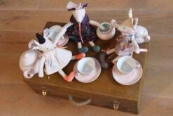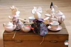Petit personnage plein de délicatesse et de poésie tout droit sorti du pays des contes merveilleux. Coquette avec son noeud en tulle et sa robe en coton fleuri, elle deviendra un petit compagnon idéal pour partager une grande histoire. Dès la naissance
