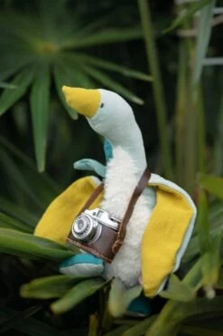 Le Voyage d’Olga est une collection composée de délicates peluches aux matières douces et agrémentées de broderies. Découvrez Plumette, la petite de la maman oie Olga : cette petite oie sauvage au doux plumage blanc avec des ailes en velours bleu grisé et en lin moutarde. Elle porte à son cou, des plumes, comme des grigris porte-bonheur à offrir lors de ses voyages. Cette peluche plaira aux petits voyageurs et voyageuses.