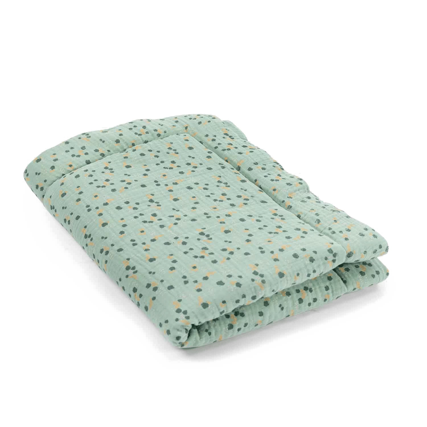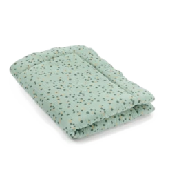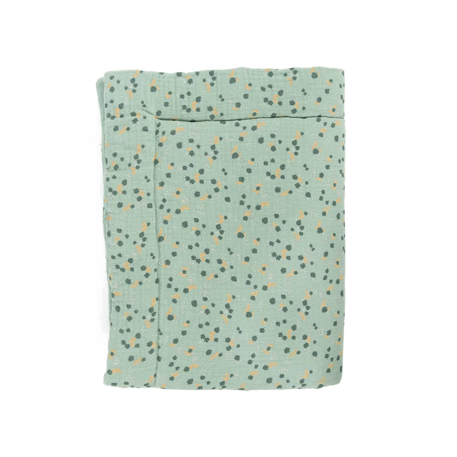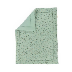 Plaid sauge (90x70cm) en lange certifié OEKO-TEX ® avec motif végétal d’un côté. Doux et moelleux, il accompagnera bébé pour le tenir au chaud, tout en décorant sa chambre !