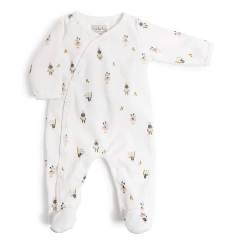Pyjama en velours de coton et son motif personnages, avec ouverture latérale par boutons-pression. Il enveloppera bébé de douceur et le gardera au chaud toute la nuit.