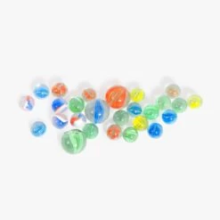 Sac de billes en tissu pour jouer ou échanger à la récré. Sac à personnaliser contenant 50 billes et 5 calots. Les tissus des sacs sont des éditions limitées et sont susceptibles de changer durant l’année. Sac en coton, billes en verre. Dès 3 ans.