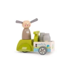 A l’aide de son triporteur, Albert le mouton va livrer son lait fraîchement recueilli à toute la Grande Famille. Tout en bois, l’ensemble comprend Albert et son triporteur chargé de 2 pots de lait.